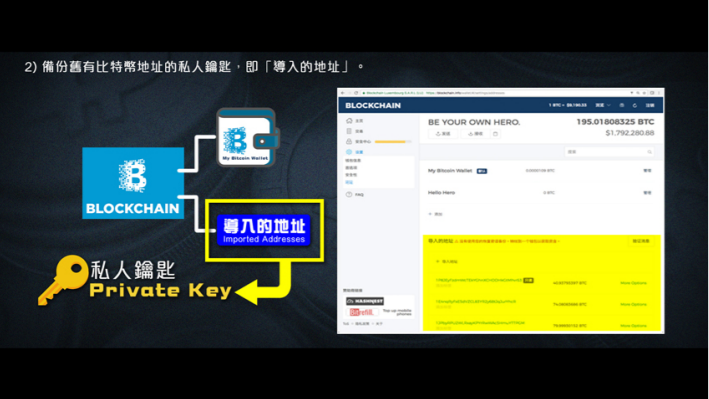 建議大家同時備份 Blockchain 戶口和舊有比特幣地址的私人鑰匙。