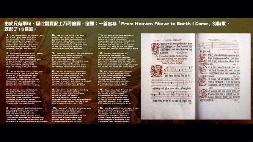 然而,以我們剛才所聽見的聖詩為例,即使它的歌譜比馬丁路德的創作較複雜及長篇,